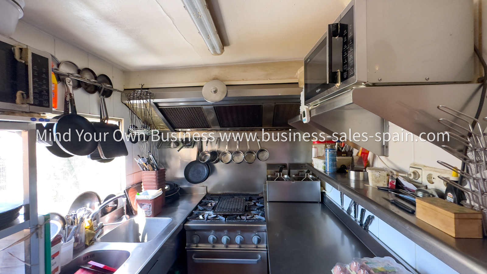 The main kitchen is small but fully fitted, it has a four burner hob with oven under, there are 3 microwaves, fridges, freezers, a dishwasher twin sink, and extraction system.