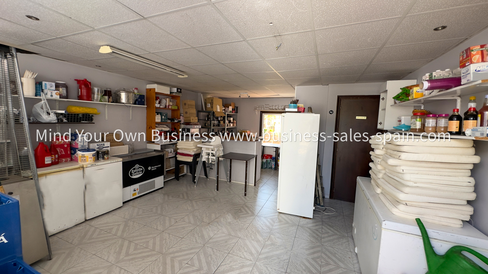 The second property is used as an overflow kitchen and storeroom. It has plenty of room for preparation as well as having space for an additional oven and hob, there are further fridges freezers and microwave. There is a huge amount of stage with shelving and also a large loft area.