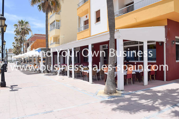 The terrace has tables and chairs with seating for around 40 people, it has all round retractable toldos (awnings making it usable all year, there is outside lighting and direct views over the promenade, the beach and the sea. There is further space to the side of the building, which could be utilised for additional outdoor dining.