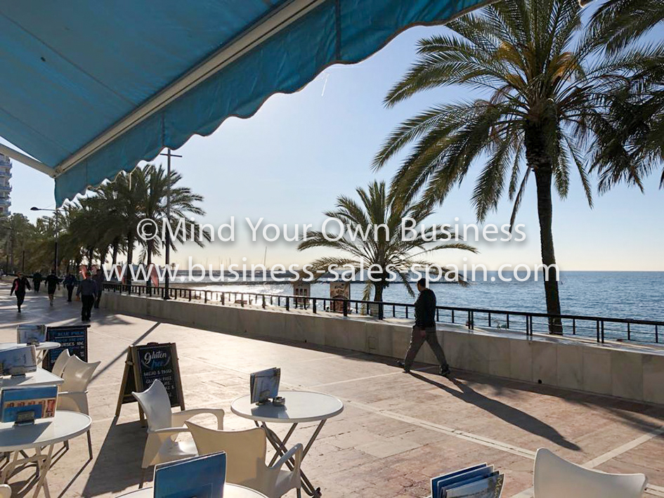 Situated right on the Paseo (Promenade) in Marbella with people walking past constantly. This café bar really is in an enviable position in one of the most affluent areas of Europe. It is popular amongst residents all year round and is especially busy during the summer months.