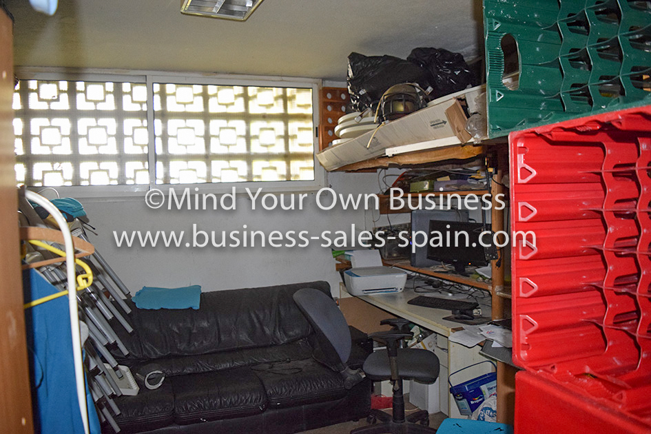 There is also a staff cloakroom and a separate office with desk and shelving.
