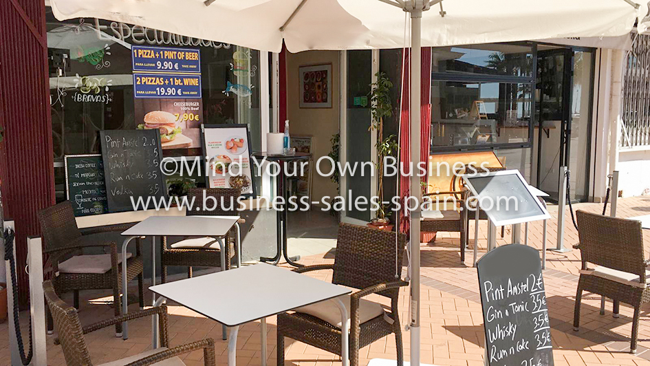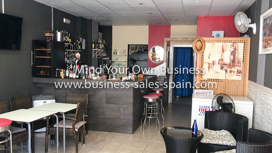 This modern cafe/bar is ideal for a couple or a partnership. It is located at the eastern end of the seafront road and there are a number of apartments and hotels nearby and a number of British and Scandinavian expats living in the immediate area providing all year trade.
