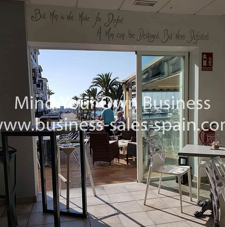Situated in a excellent position in Duquesa Port, this corner café/bar has all day sunshine and views over the moorings and the Mediterranean Sea. It has been recently refurbished at a cost of around 100.00€ It is very tastefully finished and is ready for a new owner.
