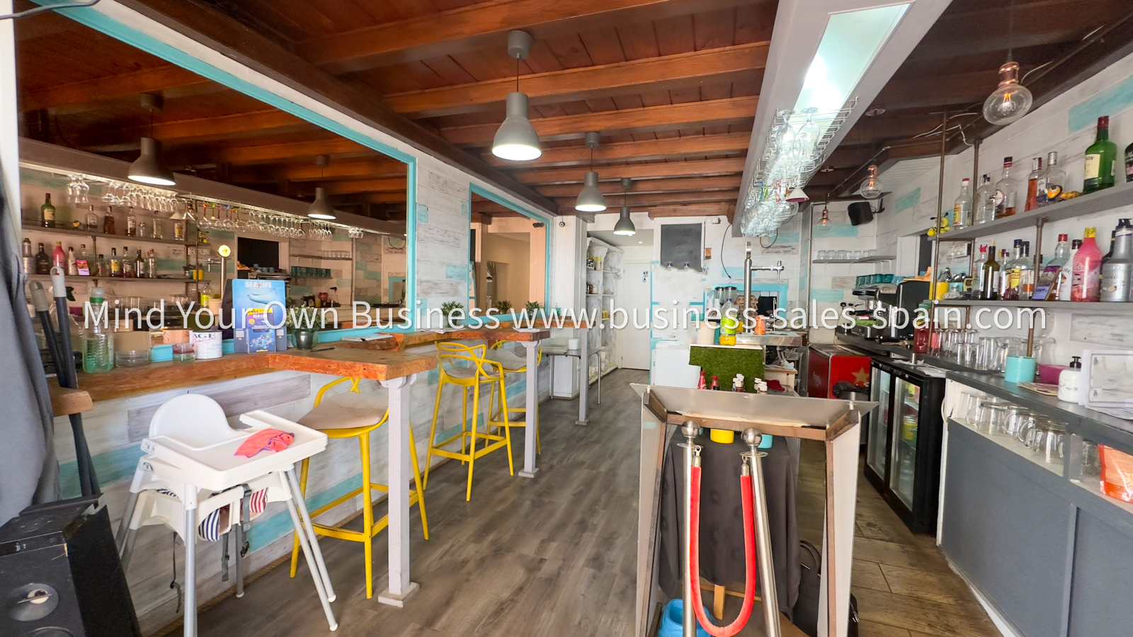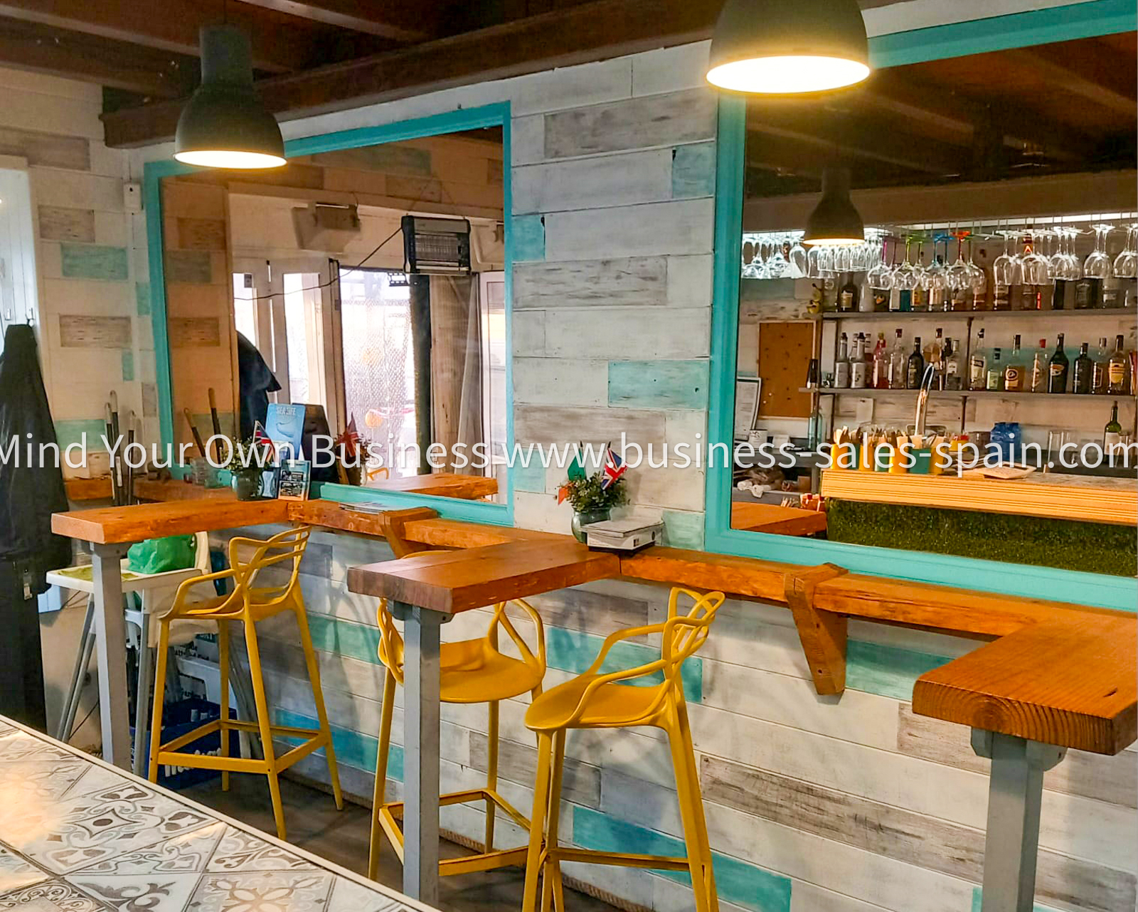 Situated right on the seafront in Fuengirola, opposite the beach with direct sea views. There are several other bars and cafes nearby as well as many apartments and hotels within a few minutes’ walk. The area is well known to be busy with local expat residents and tourists alike.
