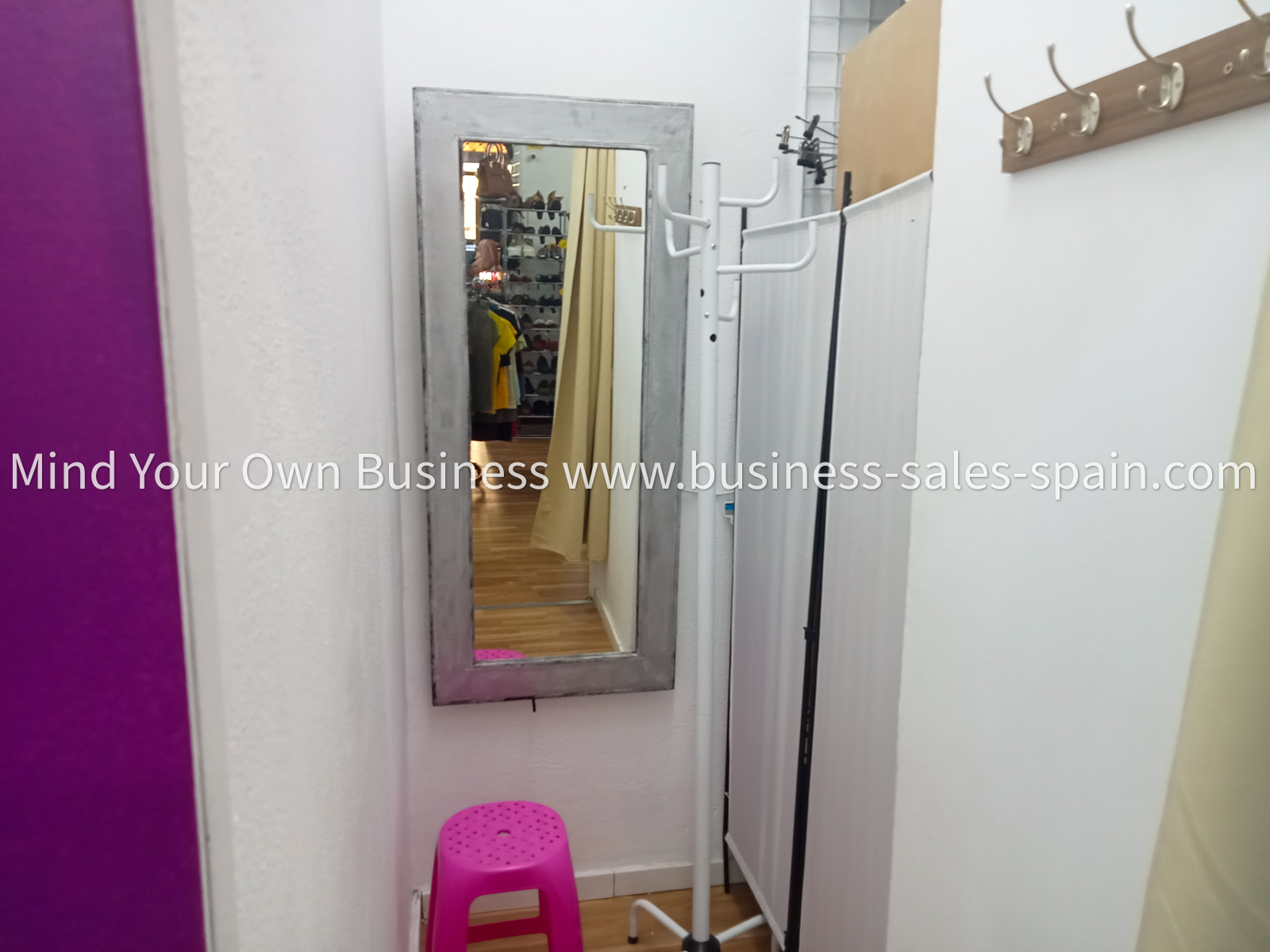 The interior of the sthop is 60m2 with fitted display stands, a serving counter with electronic till, a changing room, a storeroom, staff toilet and a rest room.