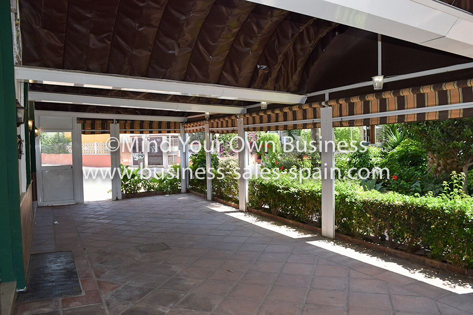 The terrace is a good size being around 70m2 and has tables and chairs for around 60 people. It is south facing and has toldos (canopies) all round making it fully usable in the winter and it can be completely open in the summer.