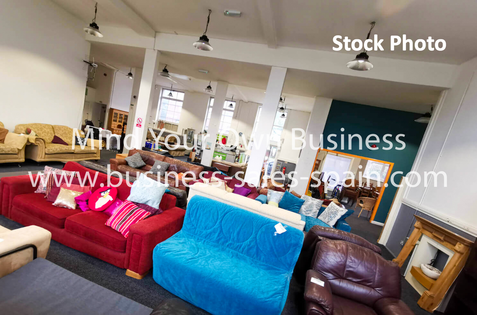 They stock all types of furniture, such as lounge or dining suites, bedroom furniture, garden furniture, lamps, mirrors etc and household appliances. There is always a huge stock worth in excess of 35.000€ which will be included in the sale.