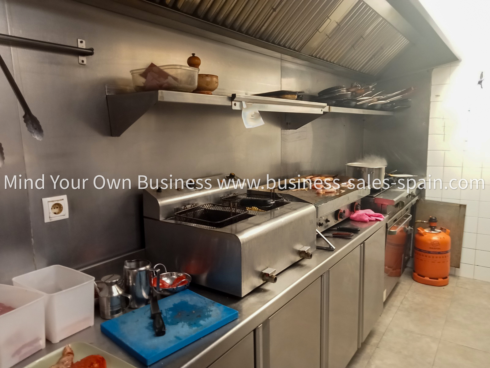 The kitchen is very well fitted indeed with stainless steel appliances and preparation areas, there is a three burner hob with oven under, twin fryer, plancha (grill), fridges, freezers, extractor dishwasher and sink. There is a separate prep area and storeroom.