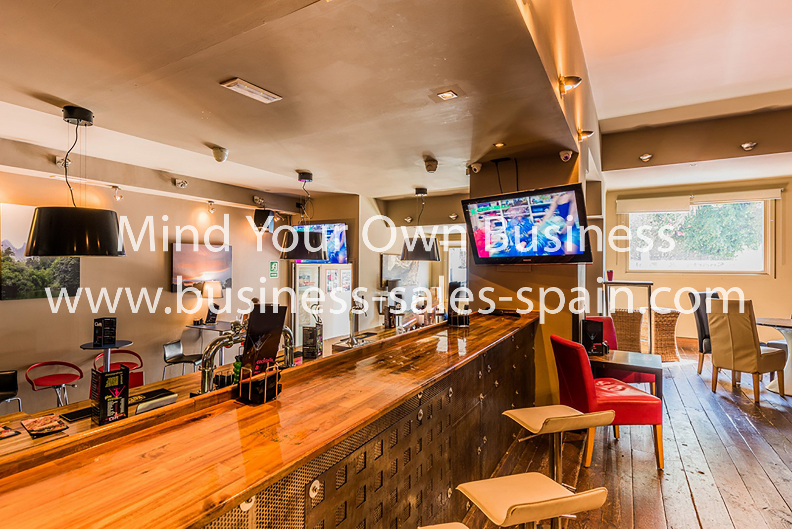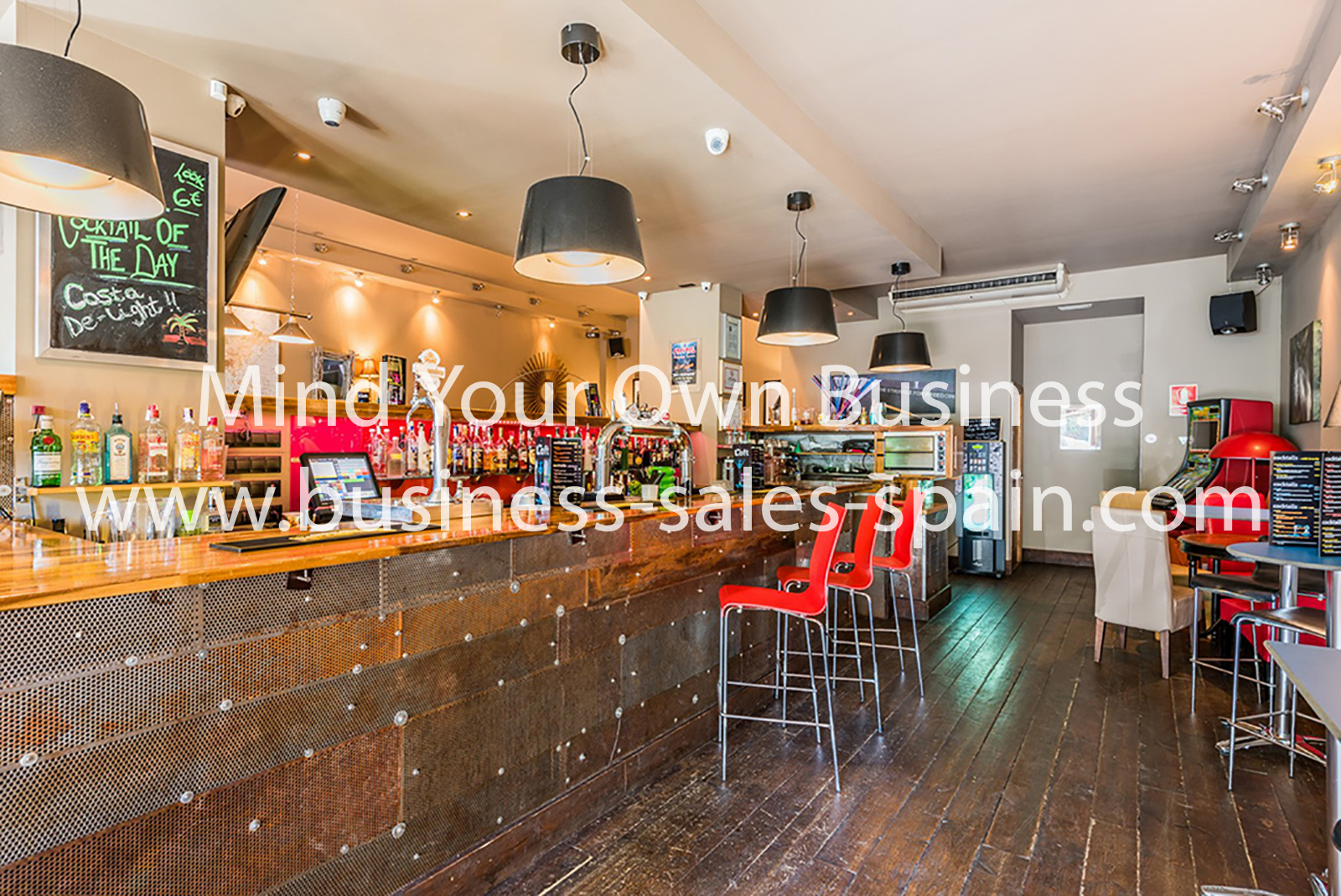 This lovely lounge style bar was completely renovated by the owner of the building and is located in very busy part of Calahonda with traffic passing all day. It is situated amongst other restaurants and bars making it a very popular area in the evenings.