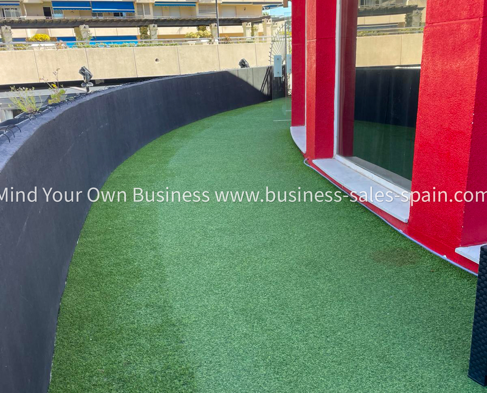 The balcony terrace is a real outdoor retreat, with astroturf grass underfoot, this al fresco space invites patrons to unwind and soak in the charm of Puerto Banus.