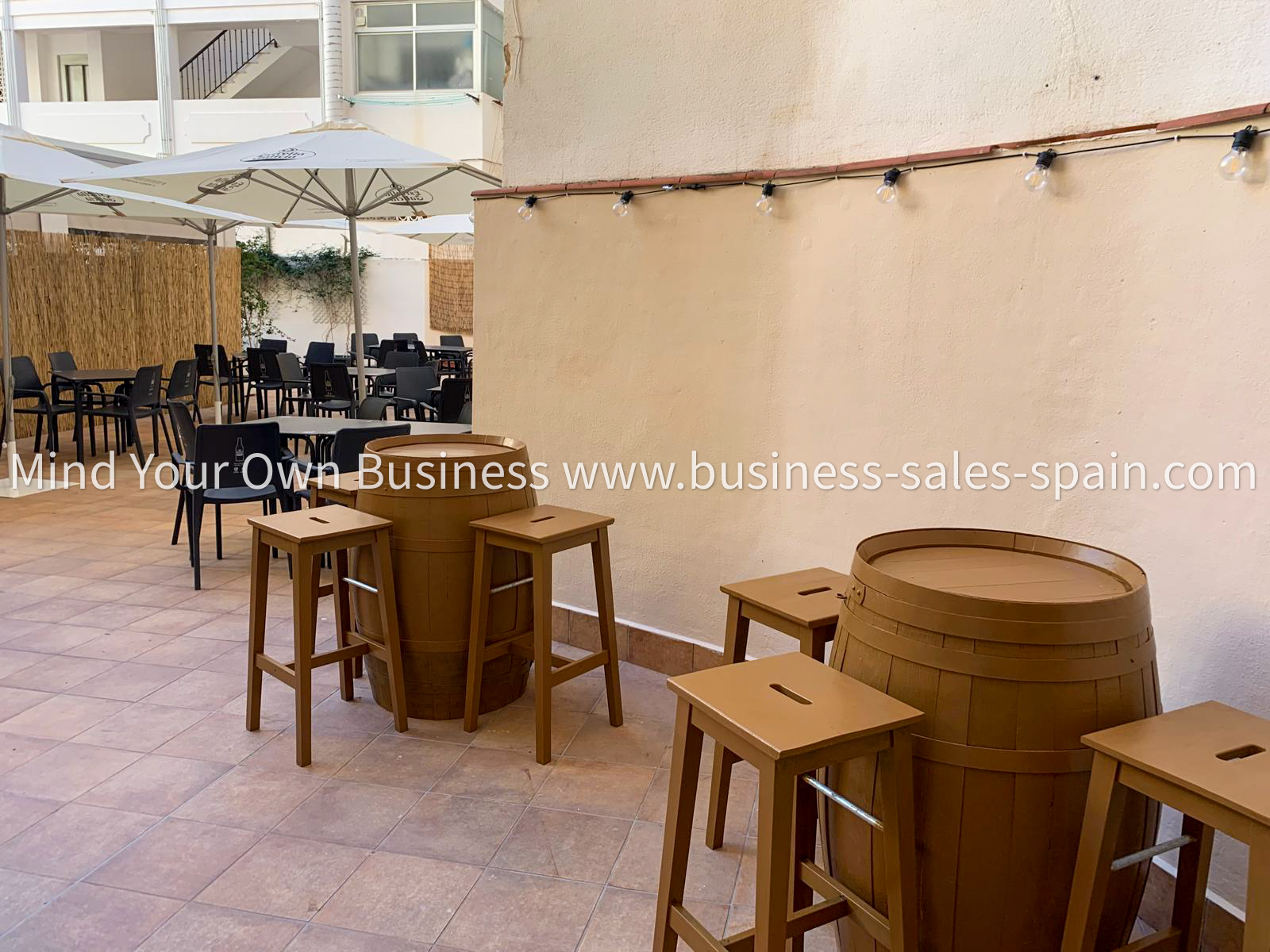 Outside there is a very large terrace roughly 180m2 which is in two areas and shared with the adjoining restaurant, it has space for around 200 people or could be used for children’s entertainment etc.
