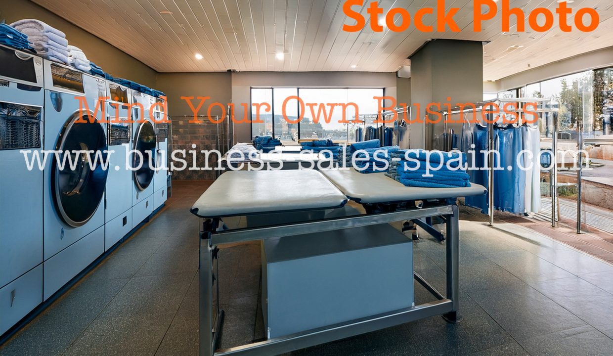 There are three washing machines, one large dryer and one large dry cleaning machine. There is a spot removal desk with machine and two large rollers for sheets etc, an industrial iron and a plastic wrapping machine. There is plenty of space for storage and packed laundry.